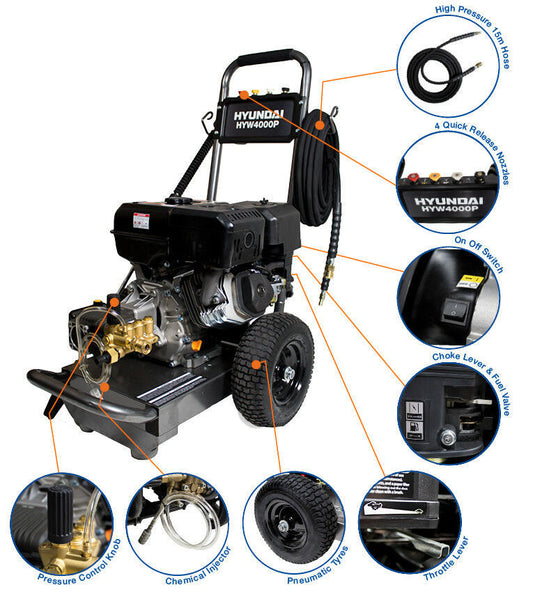 Hyundai 4000psi 275bar Petrol Pressure Washer 15L/Min 14hp 420cc, Annovi Reverberi (AR) Pump| HYW4000P